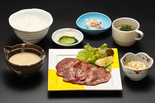 ・ねぎ塩牛たん焼き・とろろ・香の物・小鉢・御飯・スープ